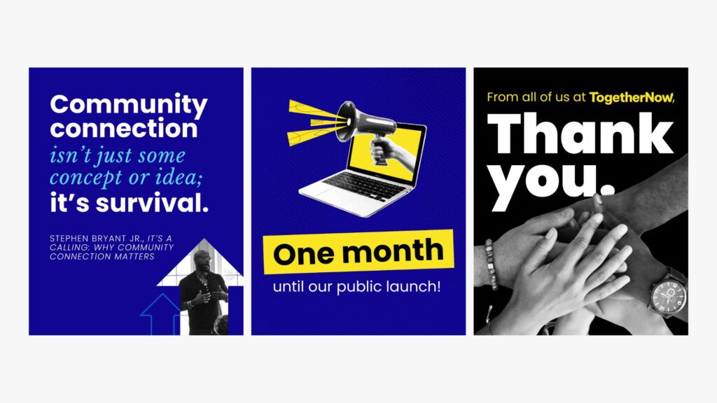 TogetherNow builds technology for good, helping communities reimagine health, education, and human services with equity and people at the center. TGW Studio and TogetherNow’s strategic partnership includes supporting their public launch, web development, communications strategy, and creative storytelling together to put human-centered design into action, highlight representation, and amplify impact. Best of all, it’s not just great work, it’s great work with friends.
