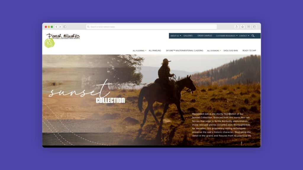 Pioneer Millworks and New Energy Works are sister companies united by a shared commitment to sustainability, craftsmanship, and employee ownership. Their commitment to sustainability and stewardship is evident in their efforts to reclaim over 1 million board feet of wood annually. They are an ESOP and operate on a triple bottom line philosophy (people, planet, and profit). TGW Studio built both websites serving as separate experiences, but as one company with the same mission and values. Both websites effectively combine rich content with user-friendly interfaces, reflecting their respective brand identities and commitment to quality and sustainability.