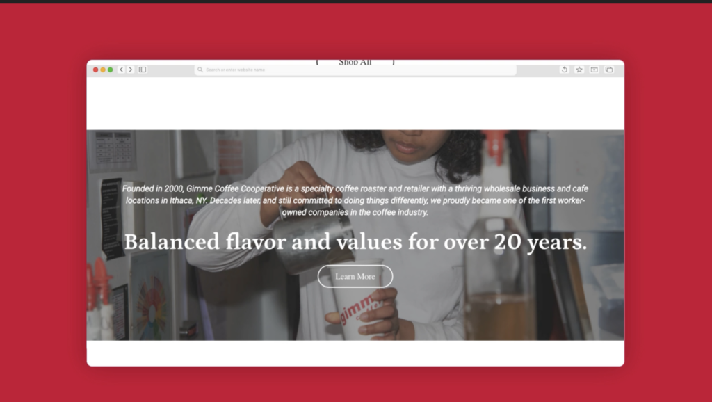 We love Gimme! For many reasons: early coffee third-wave roots (early aughts!), ethical sourcing, worker-owned and cooperative, amazing quality and reputation, and their deep mission make these guys the coolest, bad-ass brand we had the honor to work with.